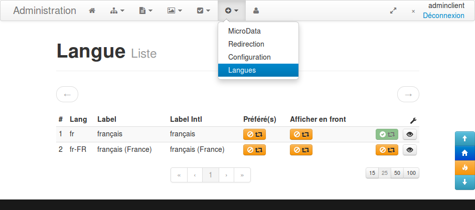 Le label de chacune des langues est internationalisé permettant à chaque usager du site de voir sa langue/pays dans sa propre langue. Bien sur dans l'administration, toutes ces langues pays sont affichées en français.